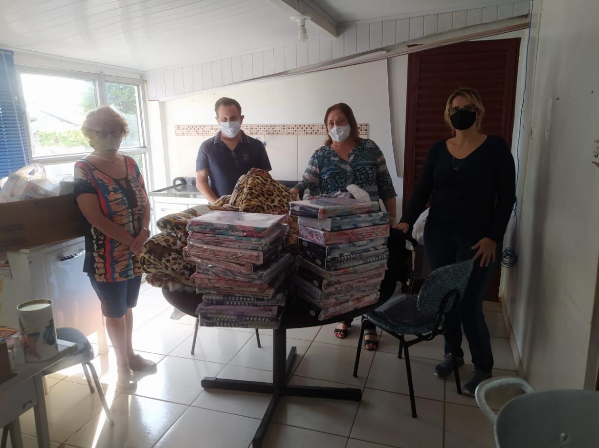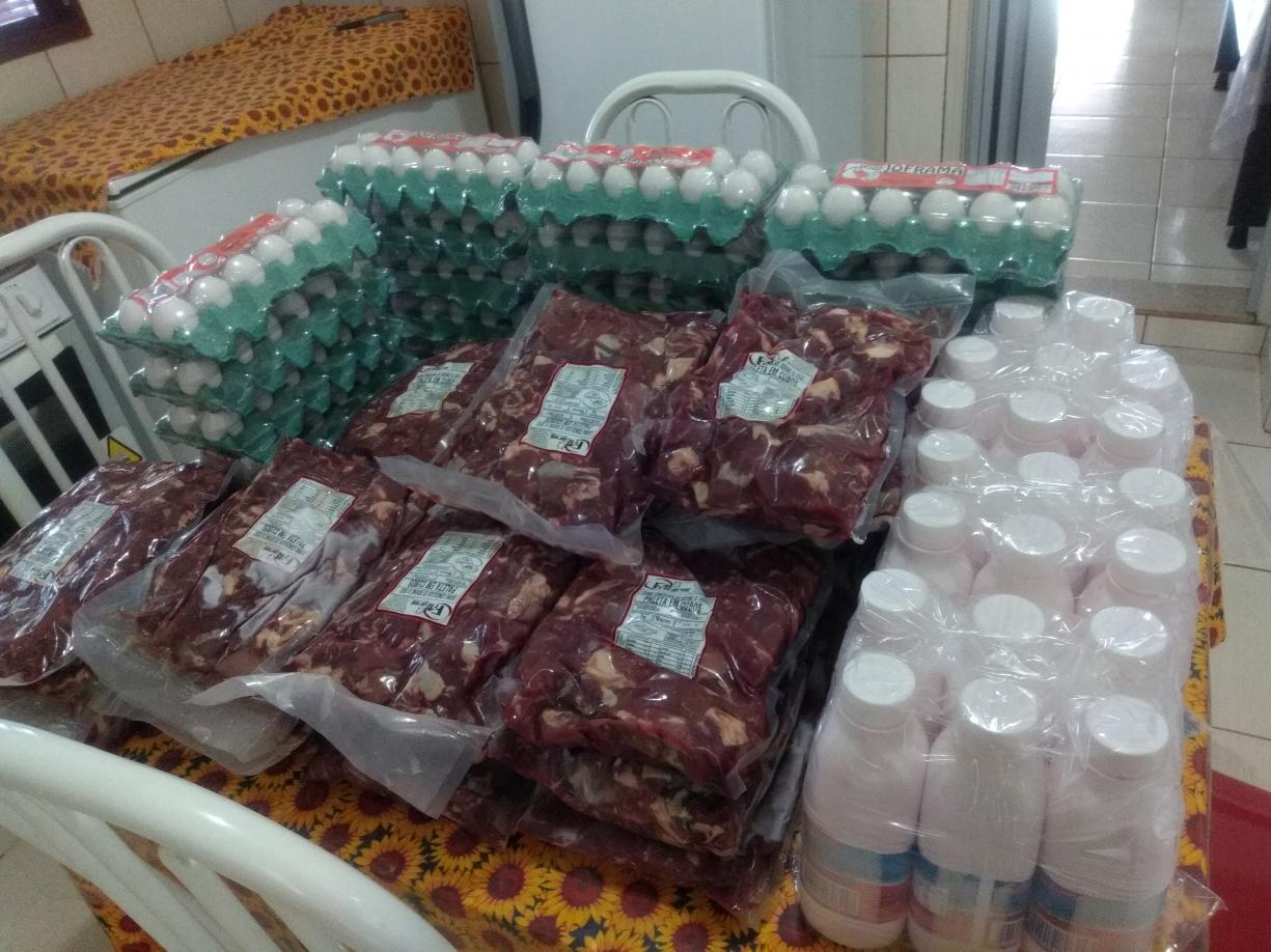 A Secretaria está ajudando na alimentação com proteínas como carnes, legumes e verduras, ovos, etc. Também estamos enviando material de limpeza e foram oram comprados mantas, lençóis e toalhas de banho para a casa.