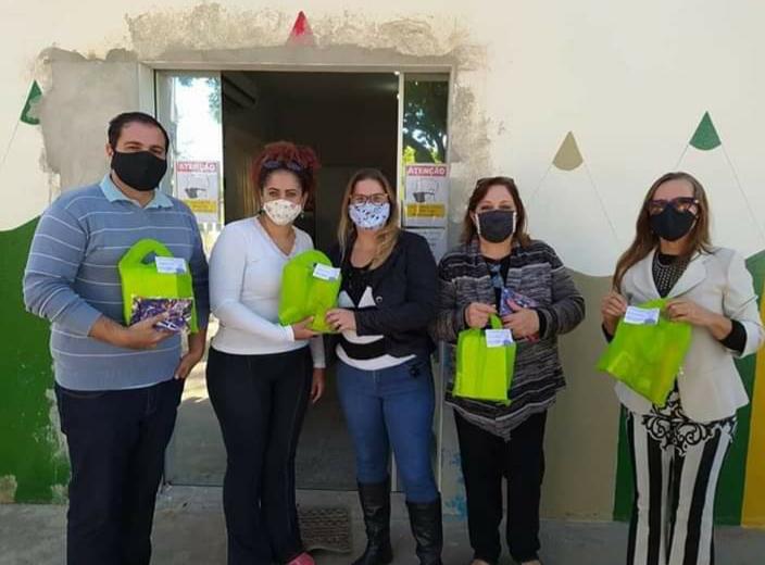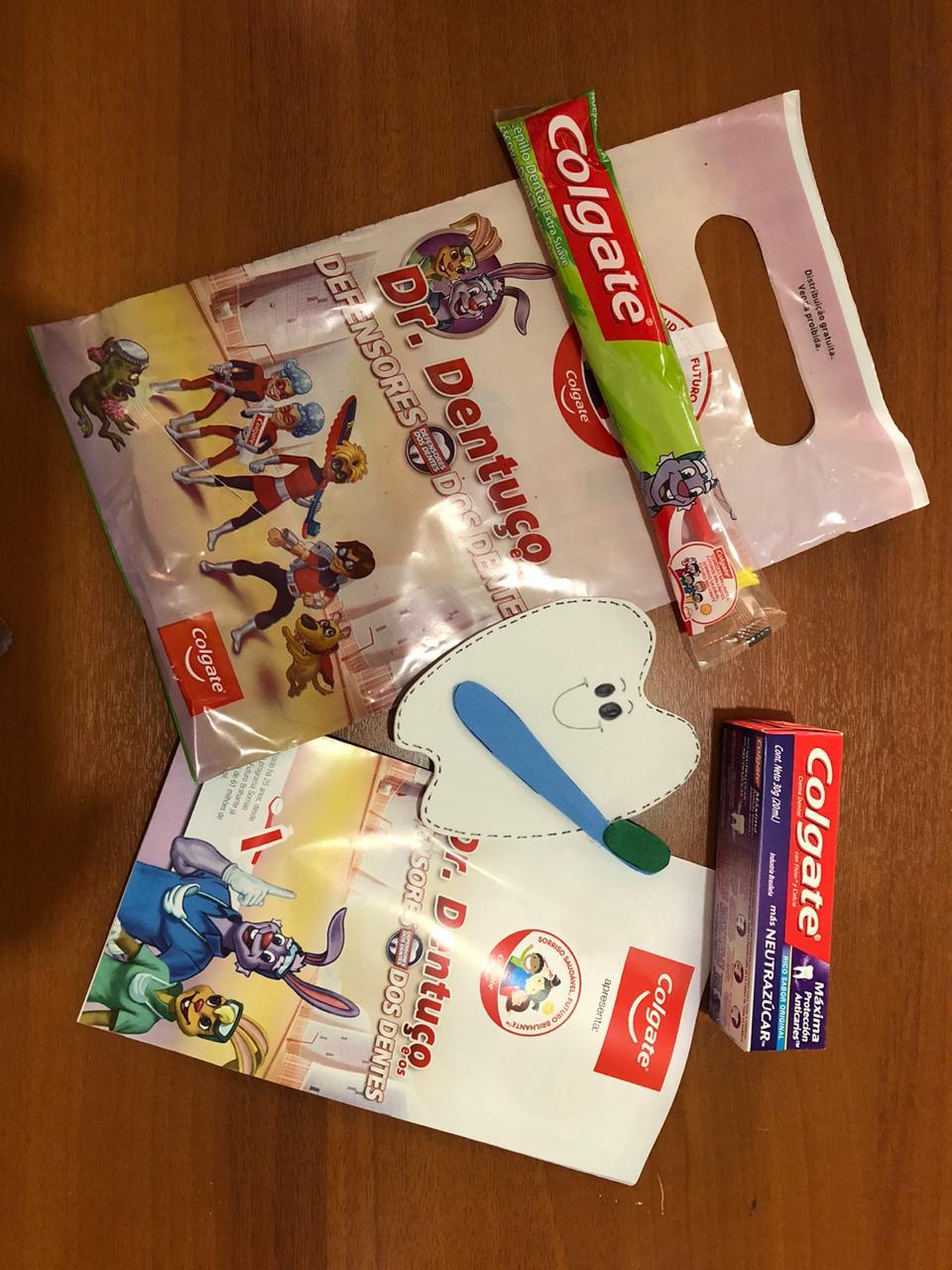 Também foram entregues kits com álcool gel, guloseimas, máscaras e o kit Dr. Dentuço.