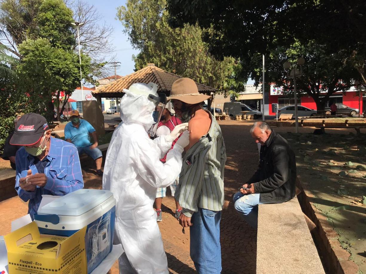 As assistentes sociais do CREAS com o apoio dos profissionais da saúde fizeram abordagem, triagem, vacinação contra a gripe e testes rápidos para o Covid19, para as pessoas em situação de rua e vulnerabilidade social.