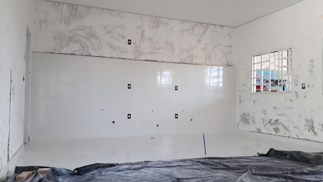 As paredes já estão recebendo a pintura, a nova cobertura metálica já está instalada e também já recebeu a pintura em sua estrutura. No novo espaço para a distribuição do leite às famílias carentes, já foram instaladas as portas, janelas e tanque, também já foram instaladas diversas portas e janelas no interior da cozinha. Todo o piso já foi trocado e boa parte dos azulejos já foi instalada. Ainda faltam ser instalada uma lavanderia com tanque, as bancadas em granito e duas cubas em inox.