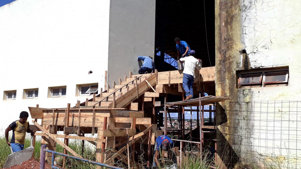 Esta obra está sendo realizada para atender aos requisitos exigidos pelo Corpo de Bombeiros, somente com estas adaptações e outras que ainda virão o Ginásio poderá ser liberado para uso.