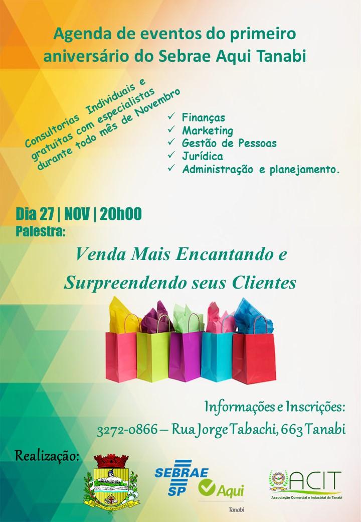 Para comemorar um ano do SEBRAE Aqui Tanabi, durante o mês de novembro, empresários poderão contar com consultorias individuais, feitas por especialistas do SEBRAE de São José do Rio Preto nas áreas de Planejamento, Gestão de Pessoas, Finanças, Marketing e Jurídico.