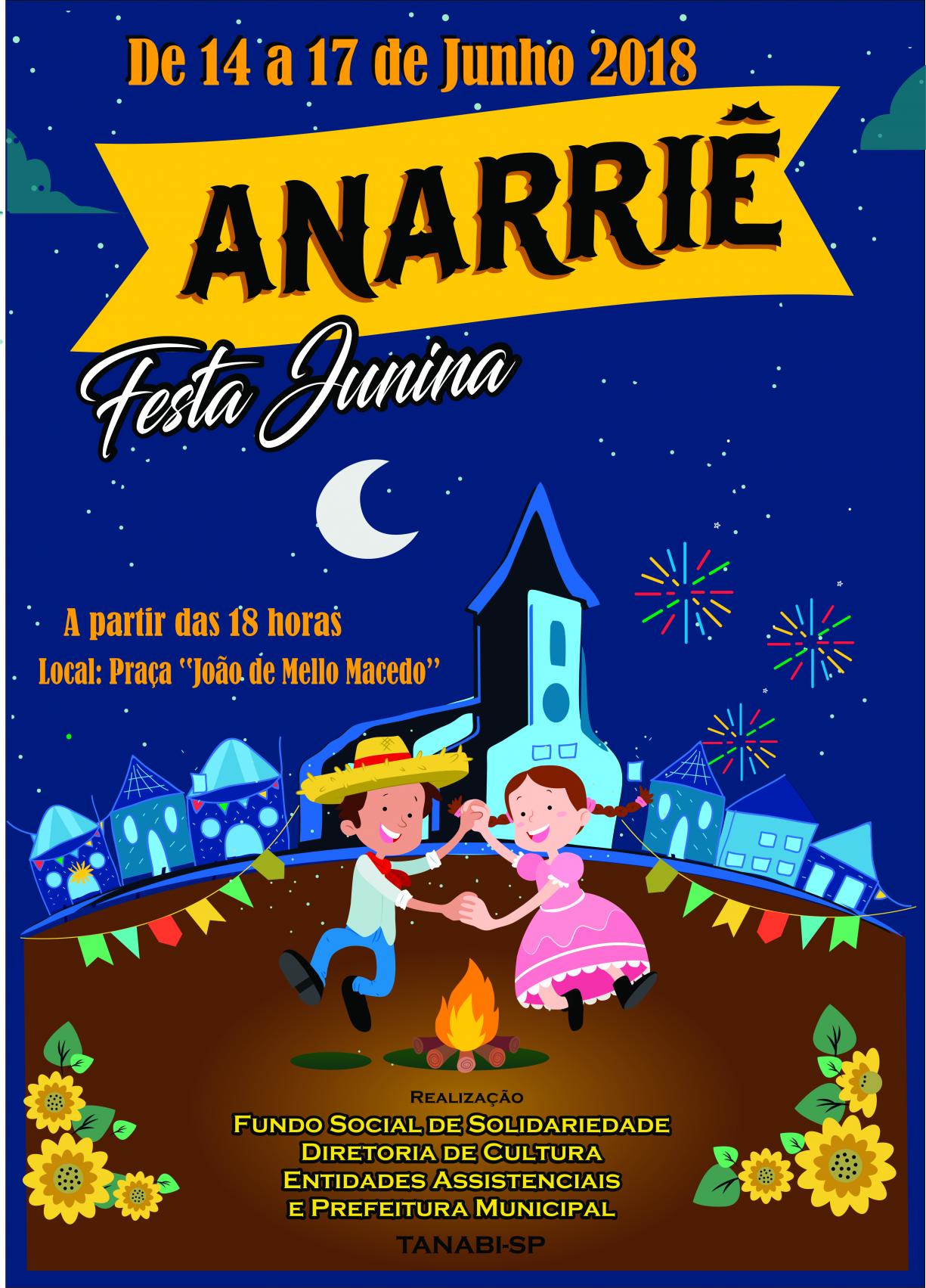 A Diretoria Municipal de Cultura em conjunto com o Fundo Social de Solidariedade e Instituições Assistenciais de Tanabi, estarão realizando o “Anarriê Festa Junina 2018”.